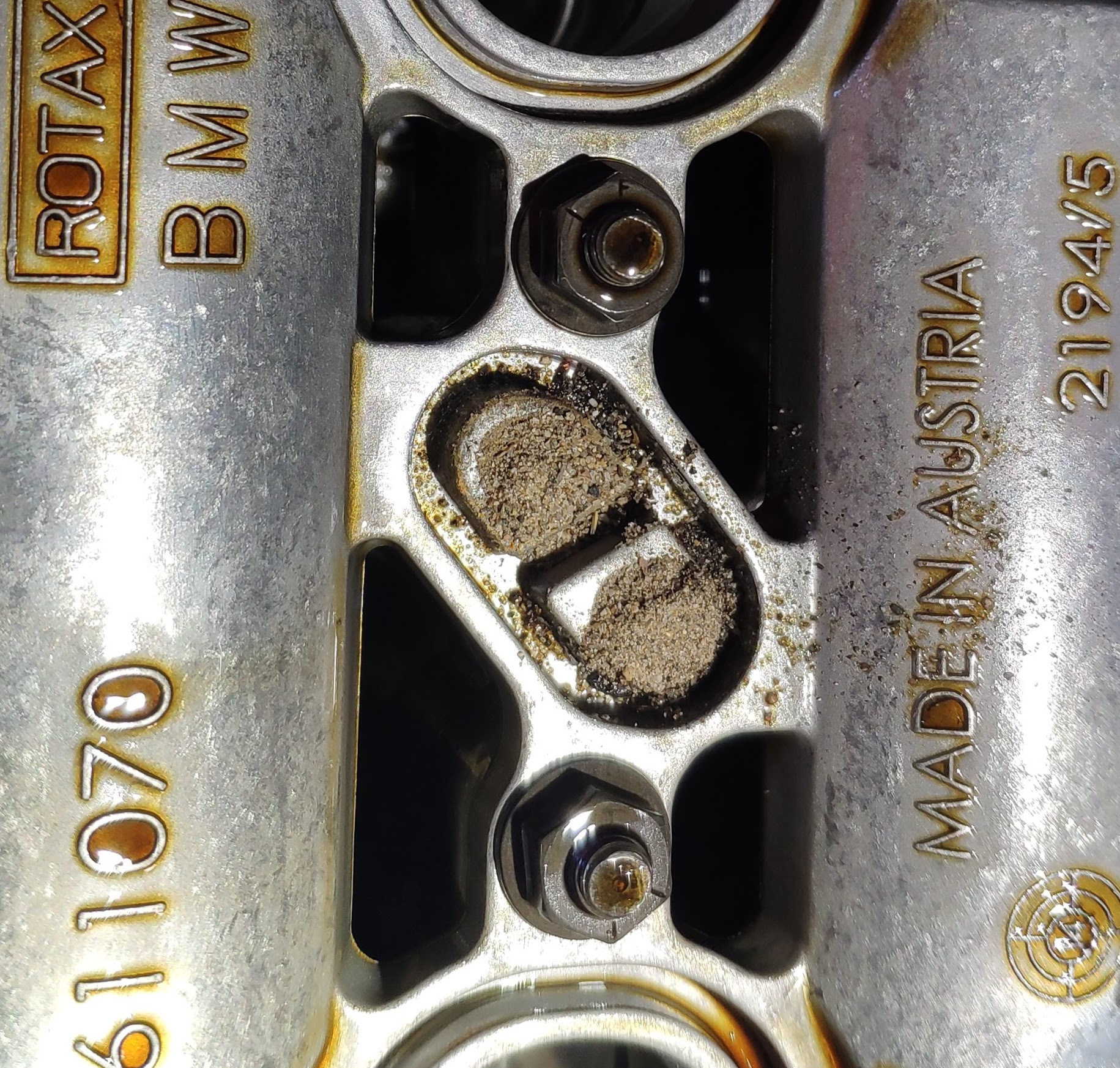 Немного удивило, то, что при снятии крышки , в месте где стоит резиновая прокладка была горка песка . Естественно, благодаря резиновой прокладке в двигло ничего не попало.
