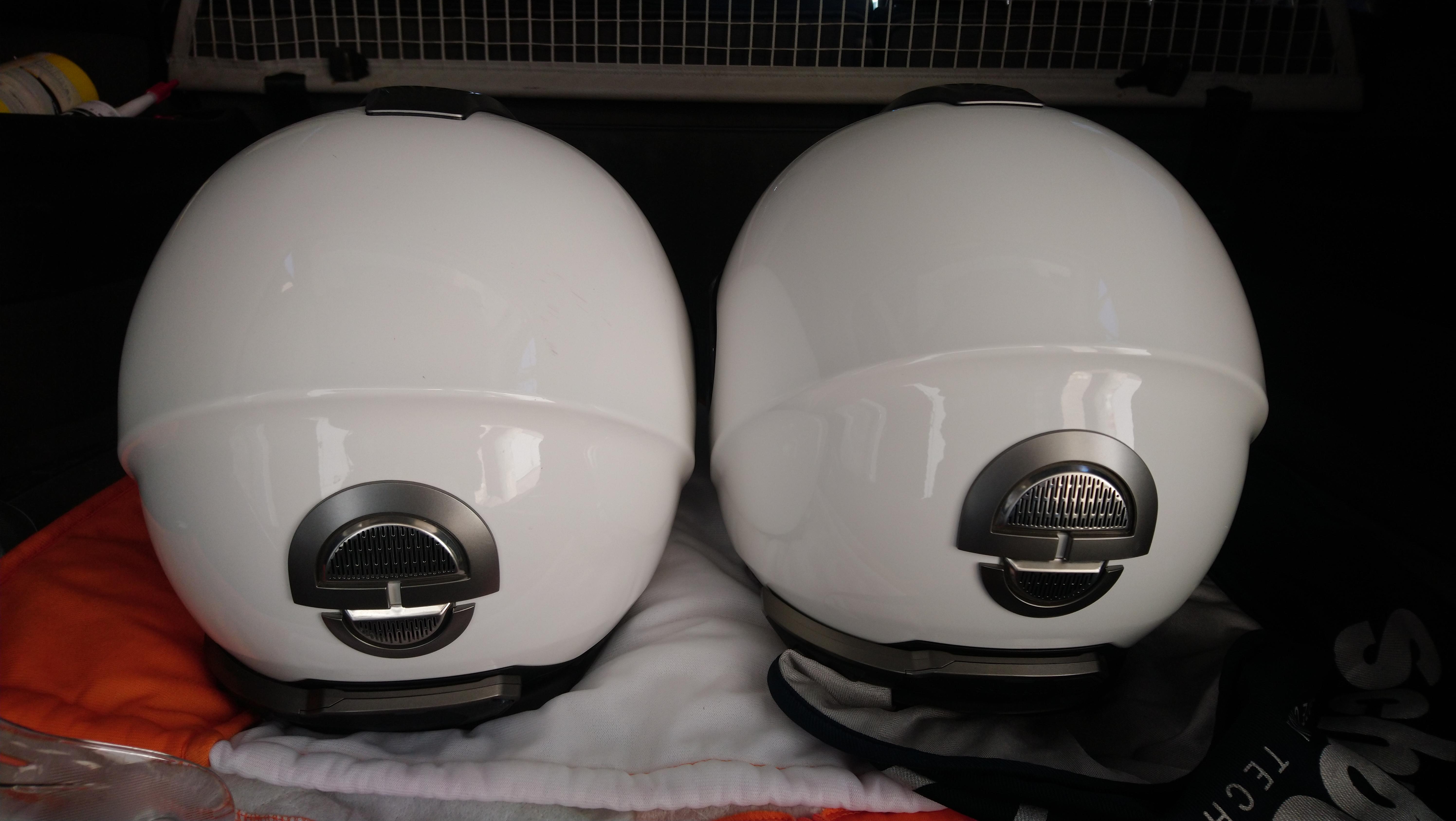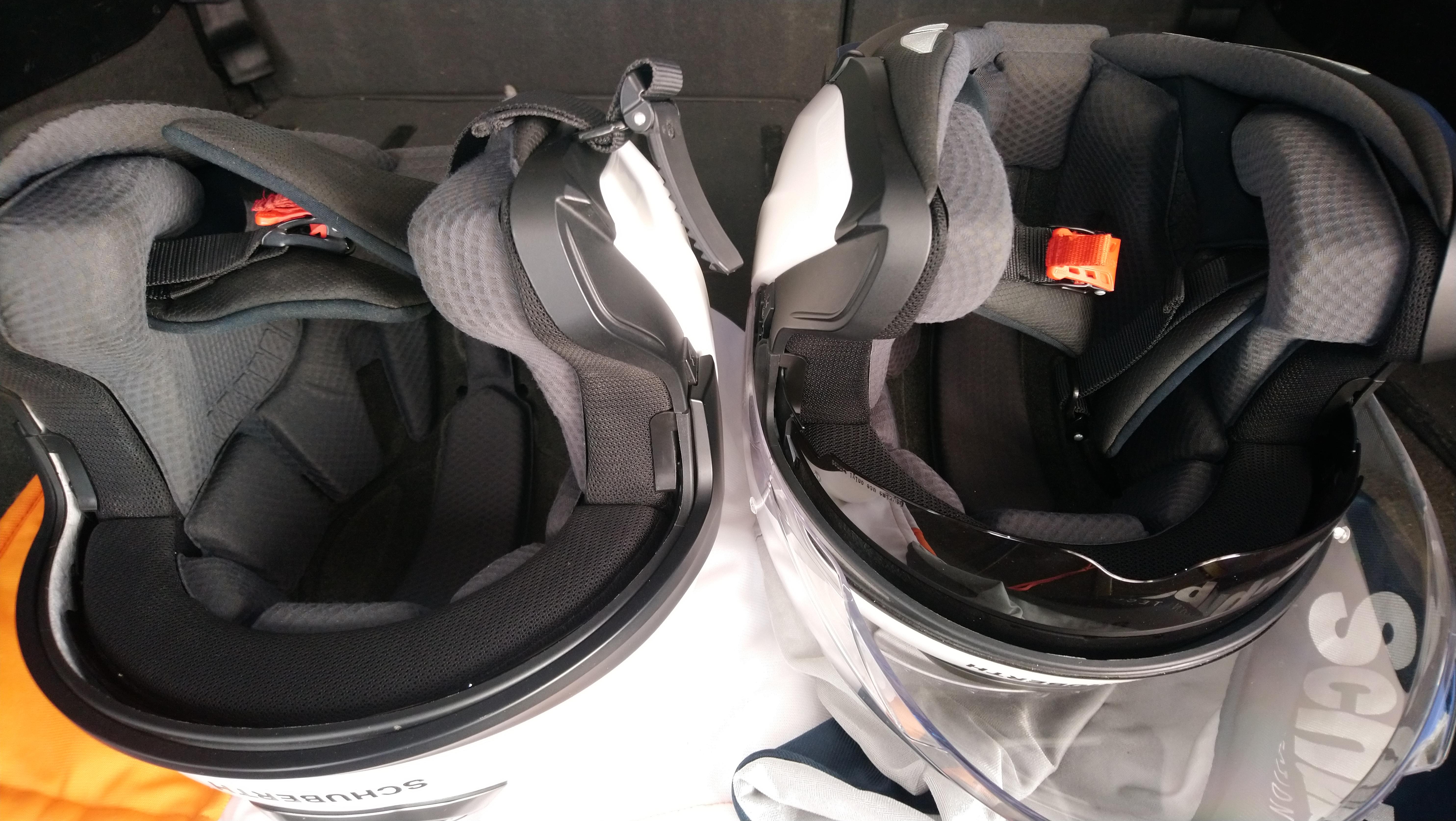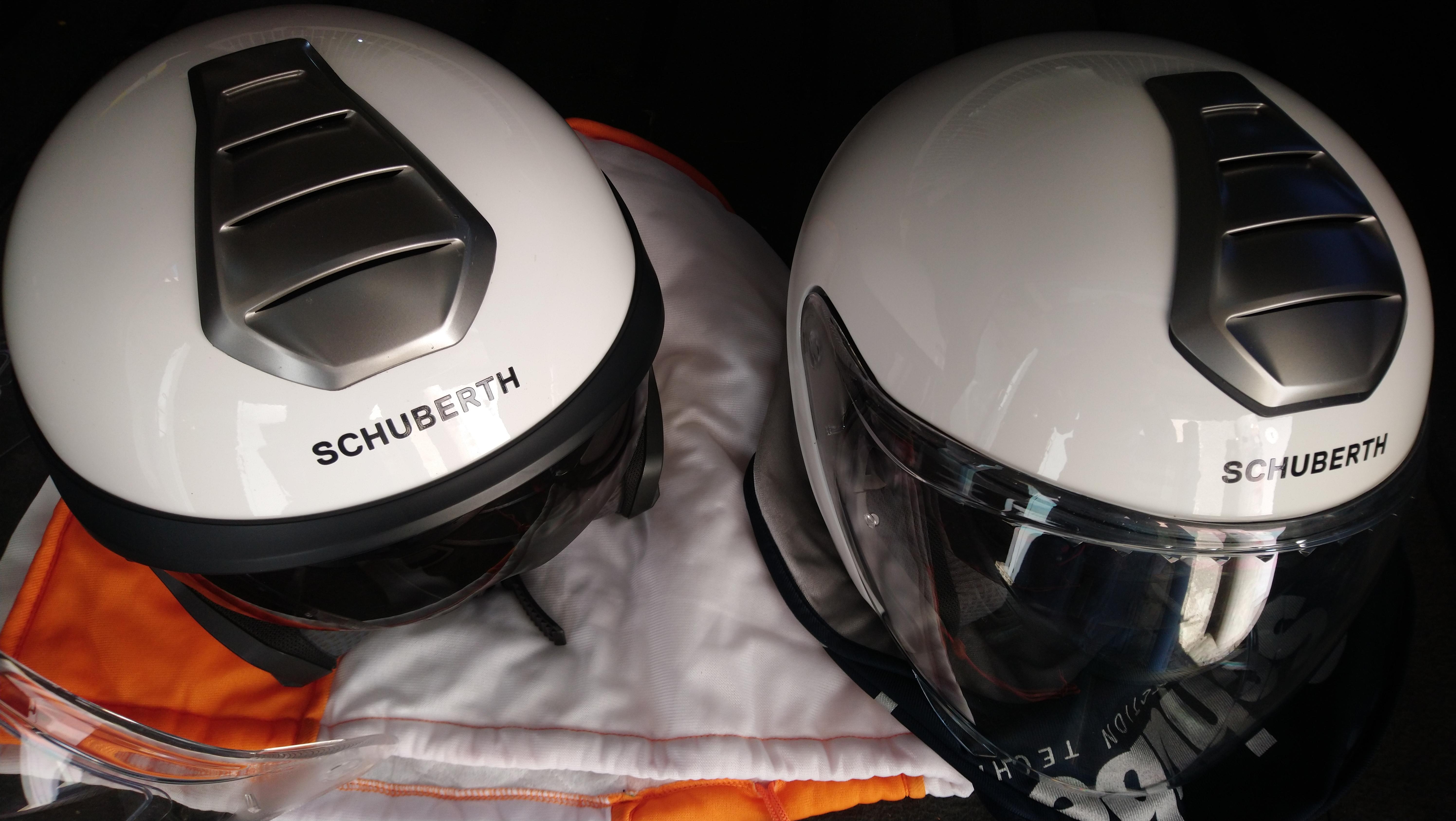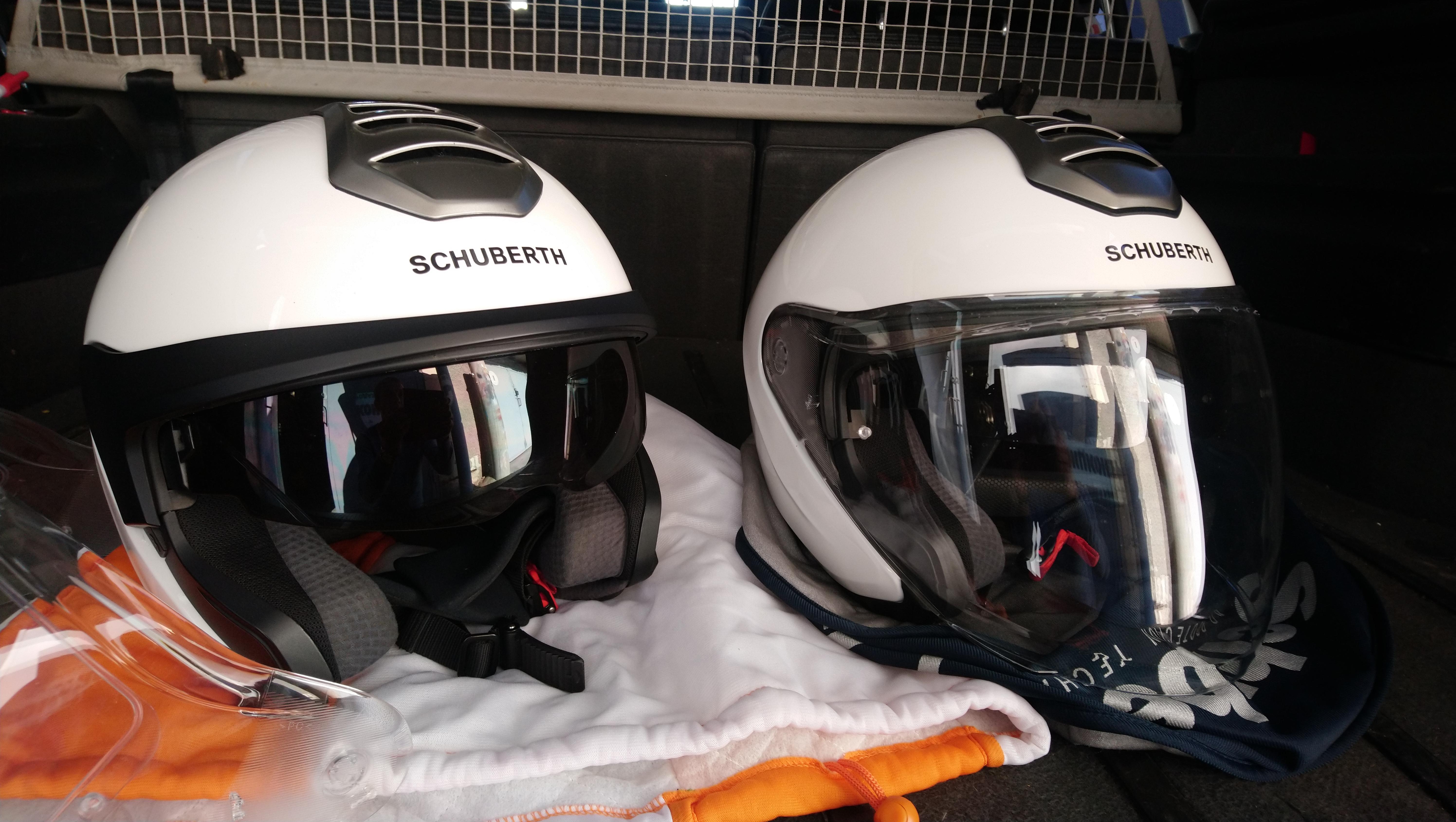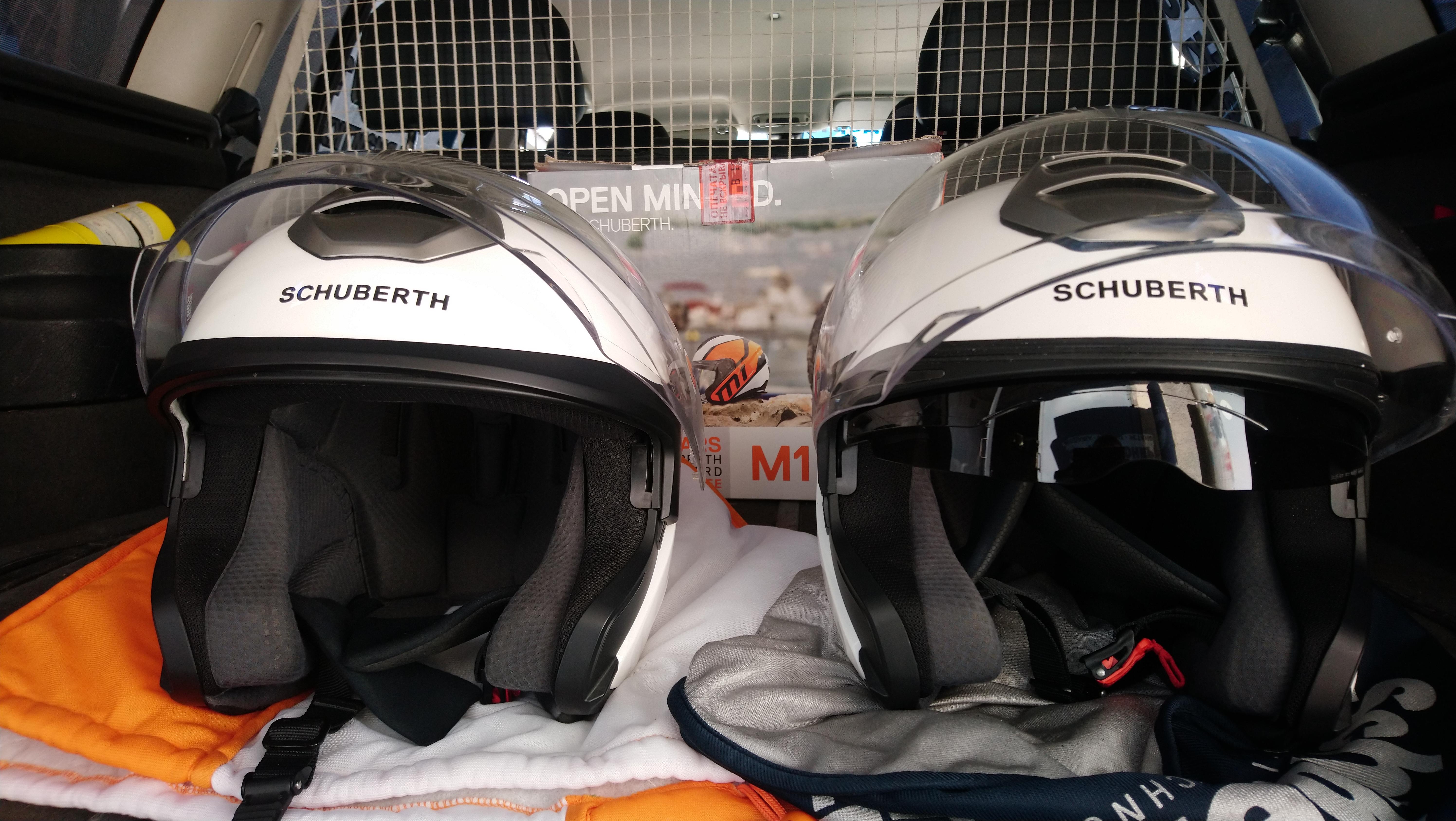 Продам шлемы Шуберт, размеры L (59) и S (55). Гарнитура в комплекте с шлемами, исправна, в идеале. Также в комплекте козырьки и пинлок. Состояние отличное, есть пара мелких царапин, практически не видны, внутри как новые, в идеале. Солнцезащитные визоры, защитные стекла в идеальном состоянии. Все механизмы исправны.Чехлы на оба шлема. Шлем 59 куплен летом, использовался редко, шлем 55 куплен пару лет назад, был одет 2 раза в поездках по городу. Цена за оба 40.т По отдельности 23 за шлем. Торга нет Вайбер, вацап, тел. +797802039трипятть