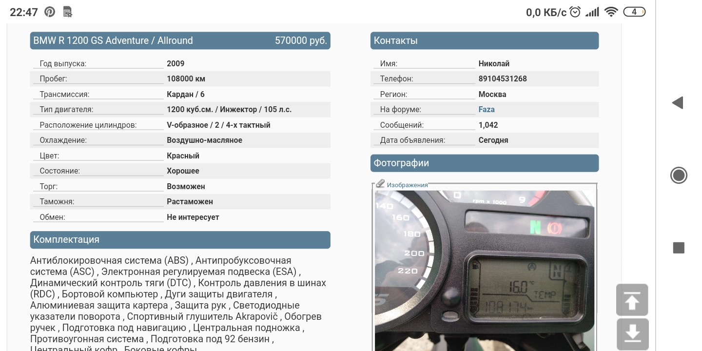 Faza Завсегдатай 1,081 0 Москва BMW R 1200 GS Adv 16 Фев 2020 #11 Клубням цена снижена до 550тыщ рублей.
