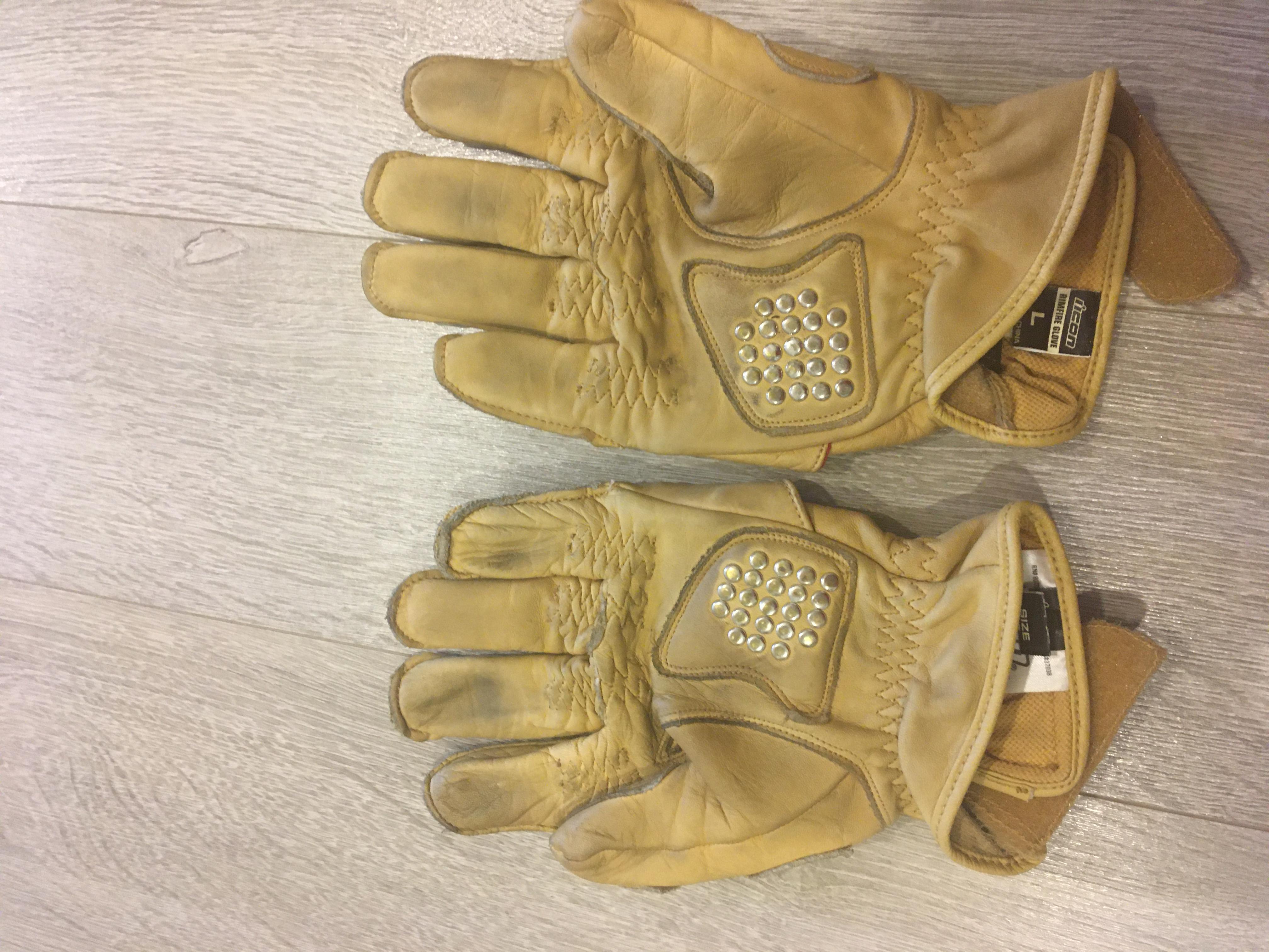 4 Перчатки ICON 1000 Rimfire. Размер L. Кожа оч мягкая и очень маркая - красятся на ура.. Цена 1000р
