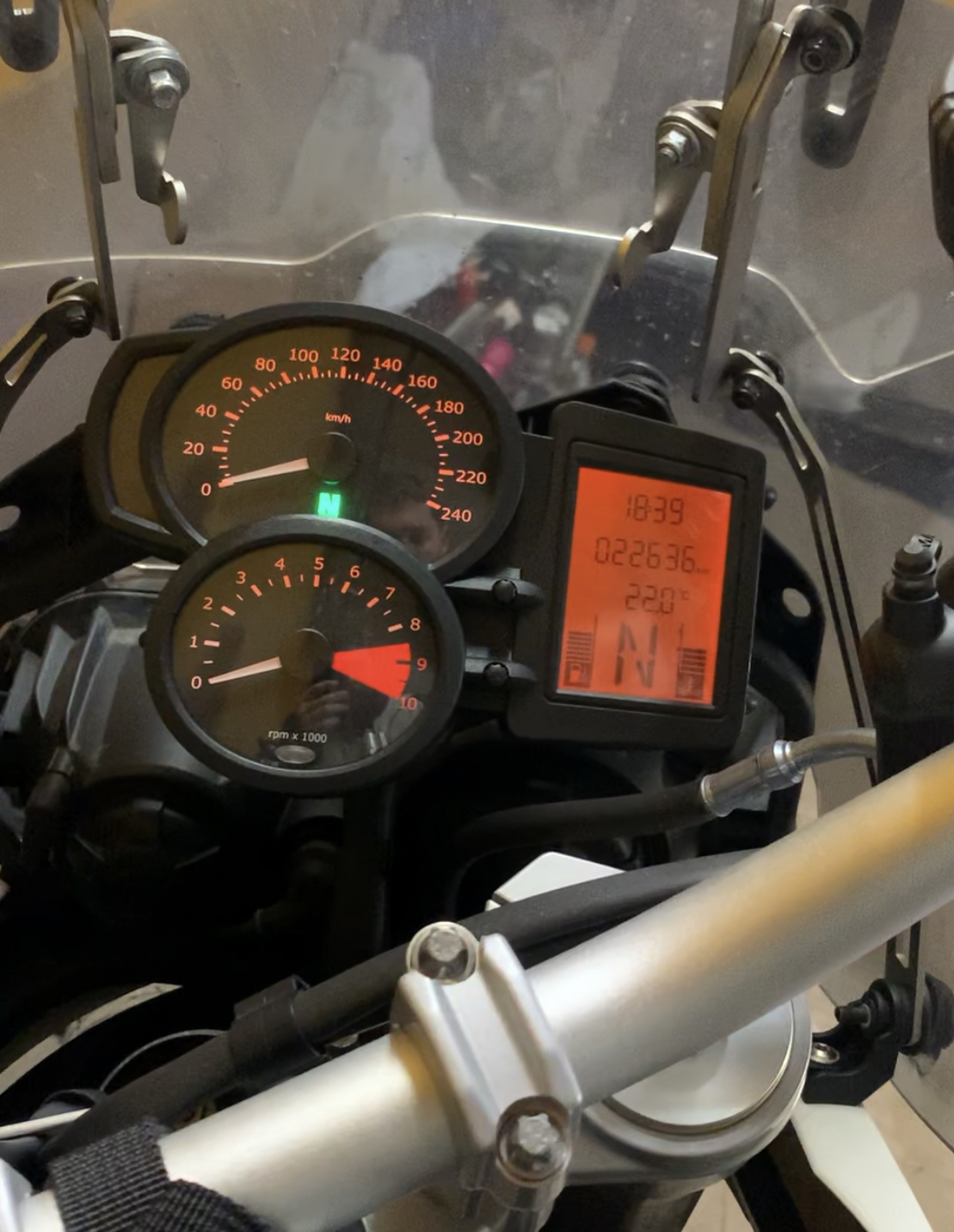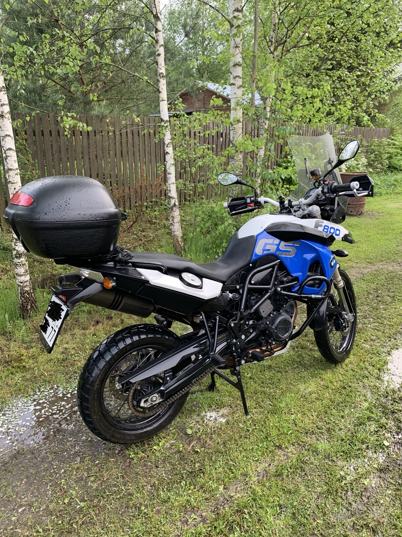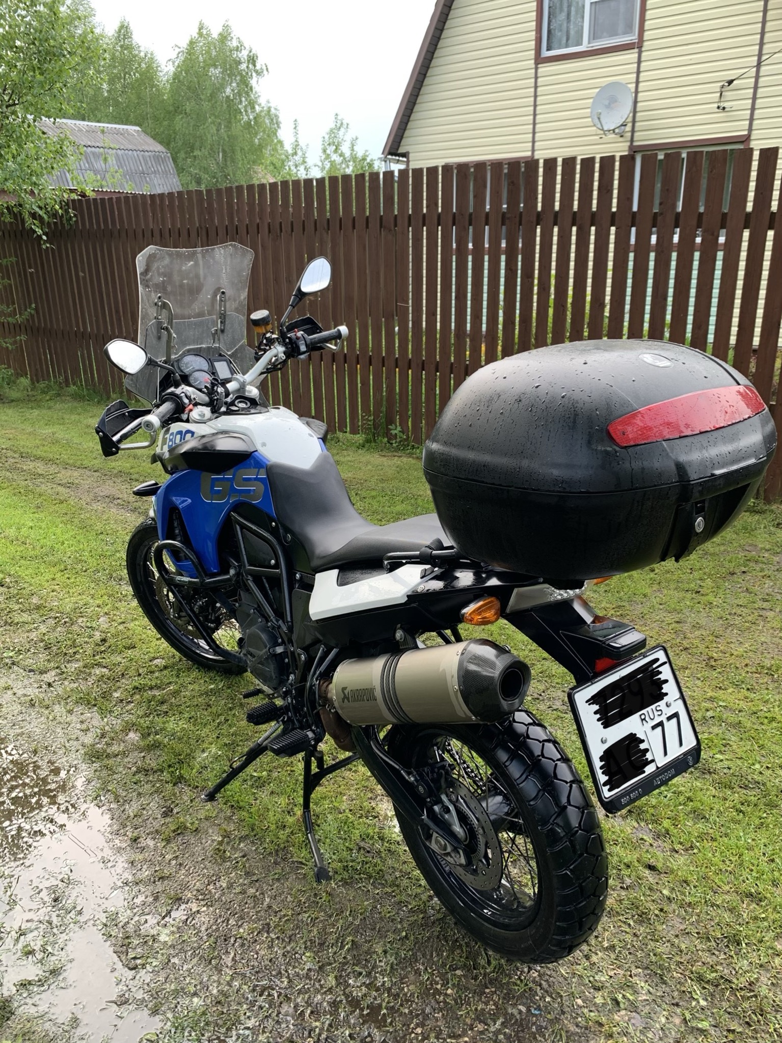 Из допов: выхлоп Akrapovich, металлическая защита рук, обогрев рук, центральная подножка Hepco&Becker, дуги SW-Motech, стекло регулируемое по высоте, защита картера, кофр Hepco&Becker, расширитель педали тормоза, чехол на мотоцикл.
