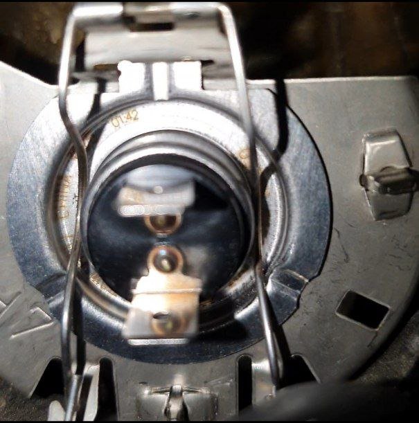 Привет, надавливаешь на пружинку и отводишь по сторонам от усиков , удобнее снимать протянув руку под фару с низу
