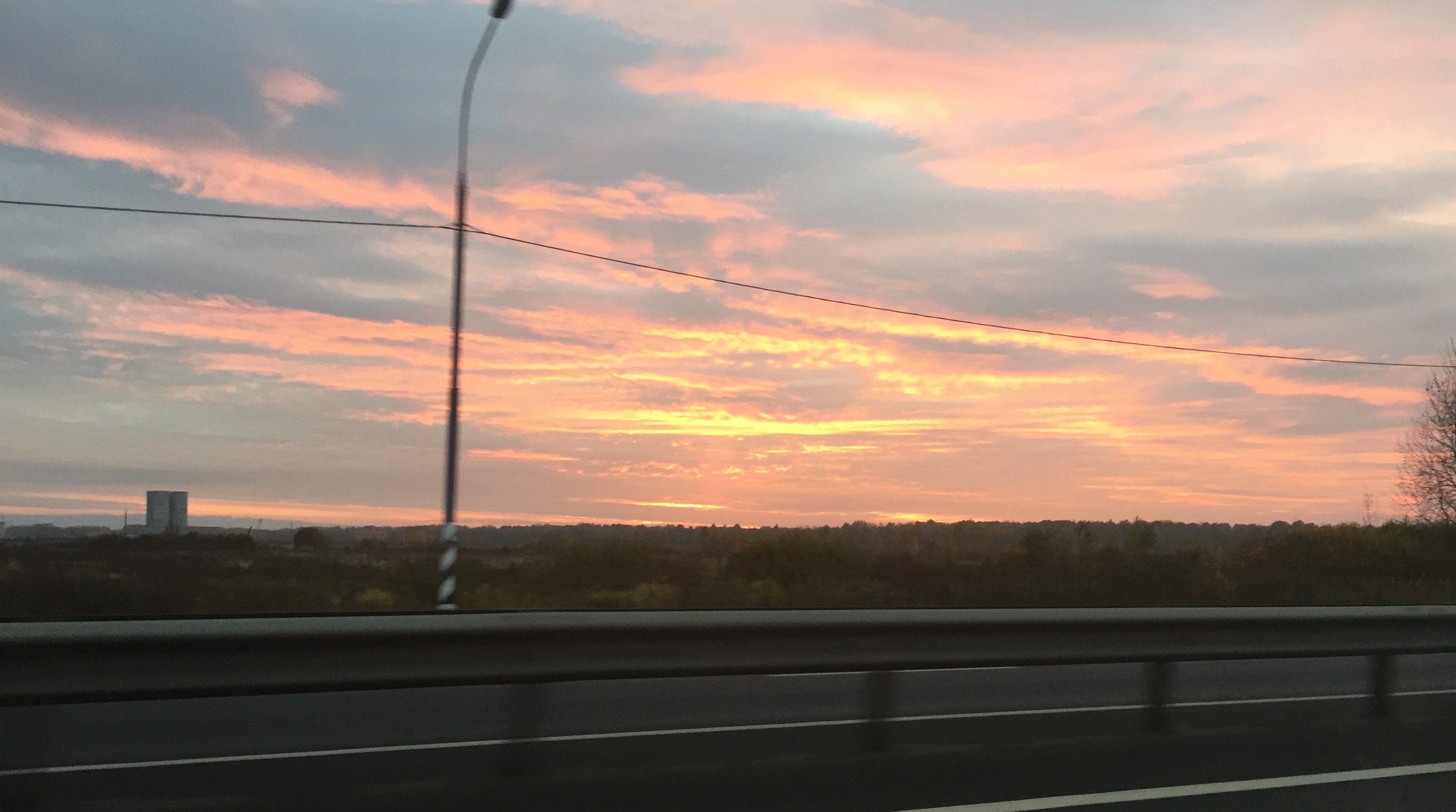 На пути в Москву, в пятницу прямо на выезде из Питера наблюдал вот такой вот восход На обратном пути, в новгородской, поймал просто пылающий закат..