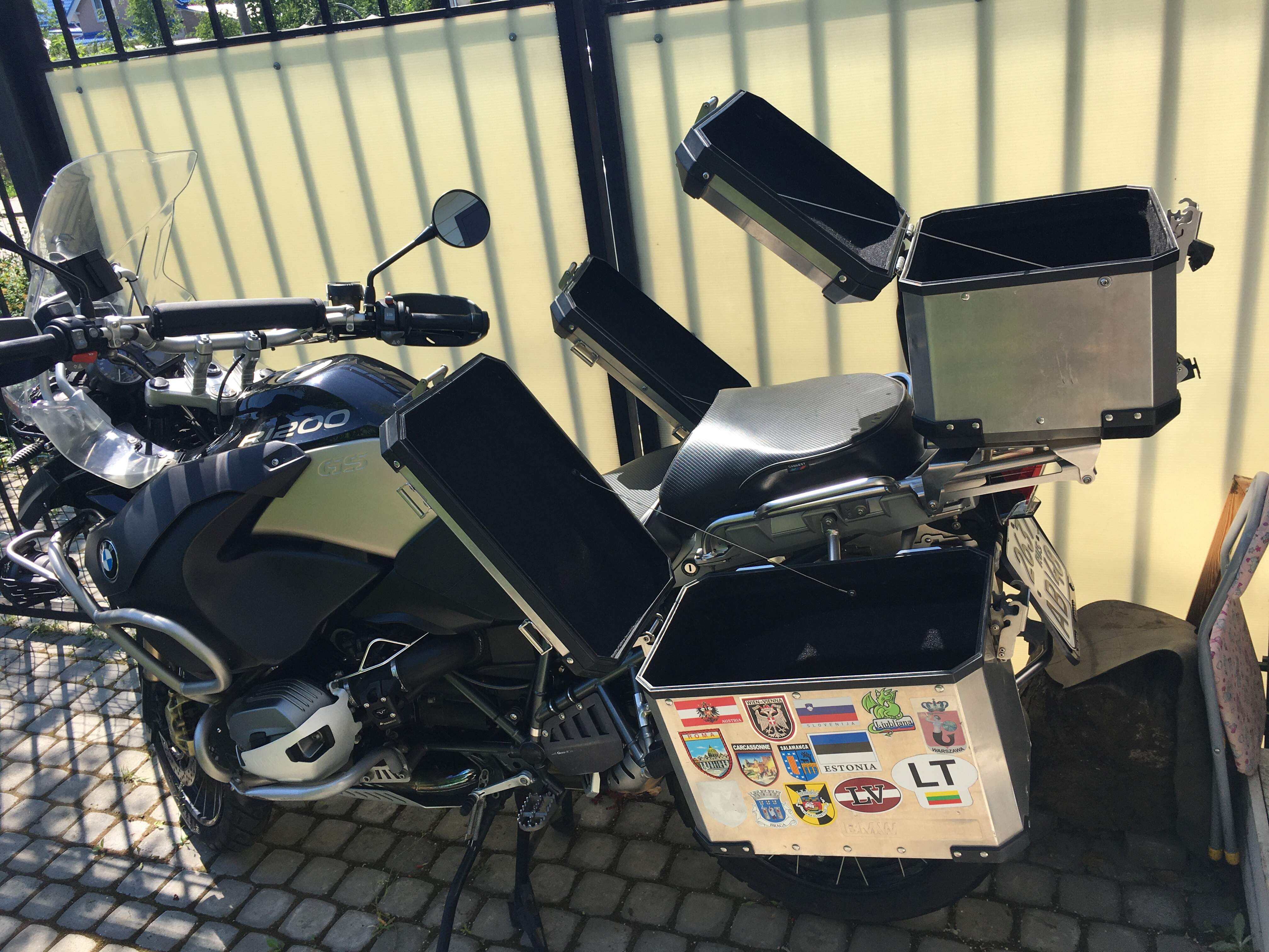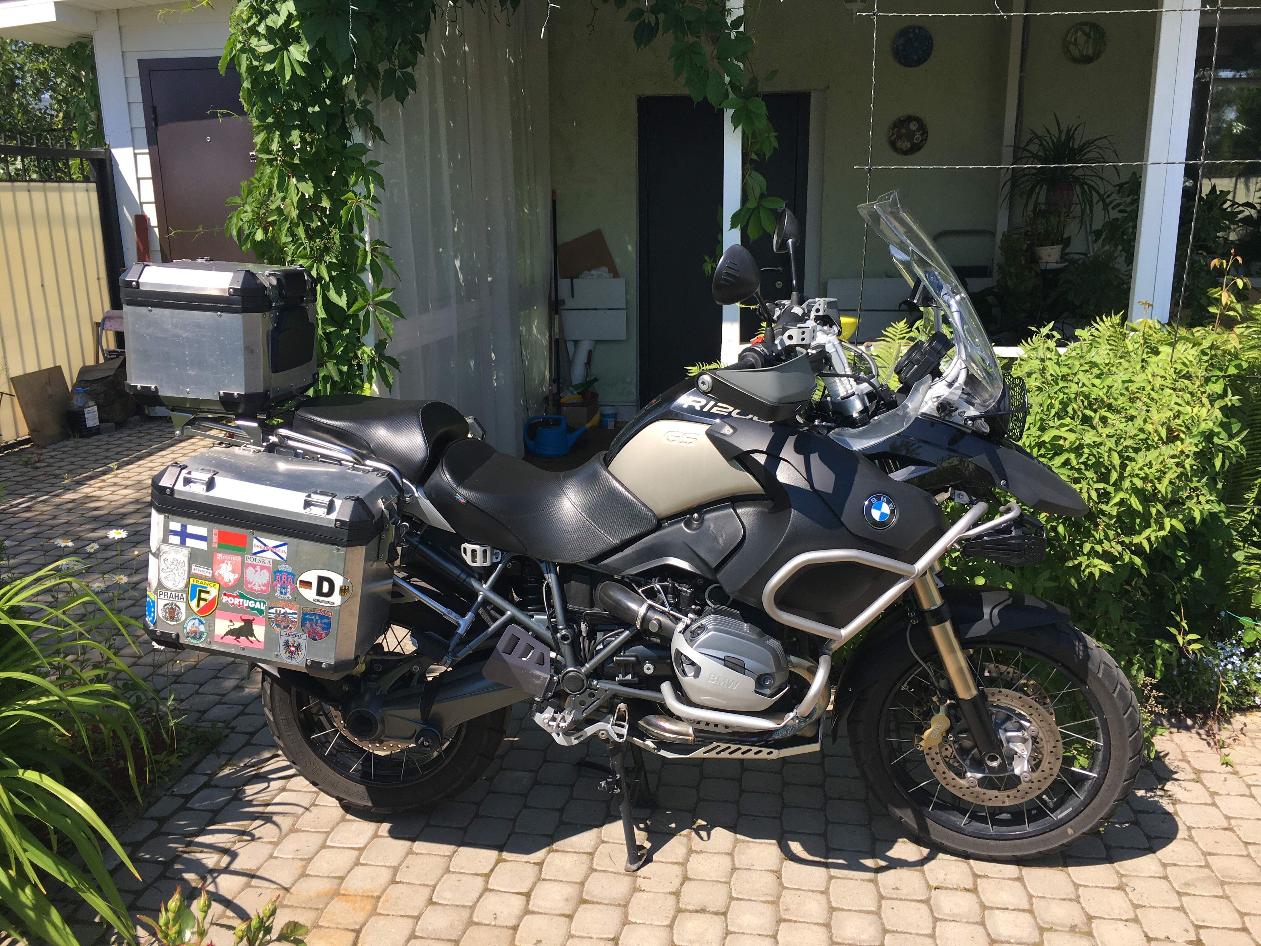 Продаю R1200GSA 2013гв. (Воздушный). Пробег 110тыс.км. Навигатор, три родных алюминиевых кофра, расширитель подножки, противотуманки, удлинитель переднего крыла, сетки на радиаторе, высокое стекло, сиденье Сержант, дуги, резина метзелер туранс (пробег 5тыс.км.), сигнализация, два ключа, акропович. Состояние очень достойное. Масло кастрол 20/50. Ездил только на дальняки, по дорогам. Хочу - 1100000₽. Торг уместен, обмен нет. Фото пришлю и попробую выложить сюда.
