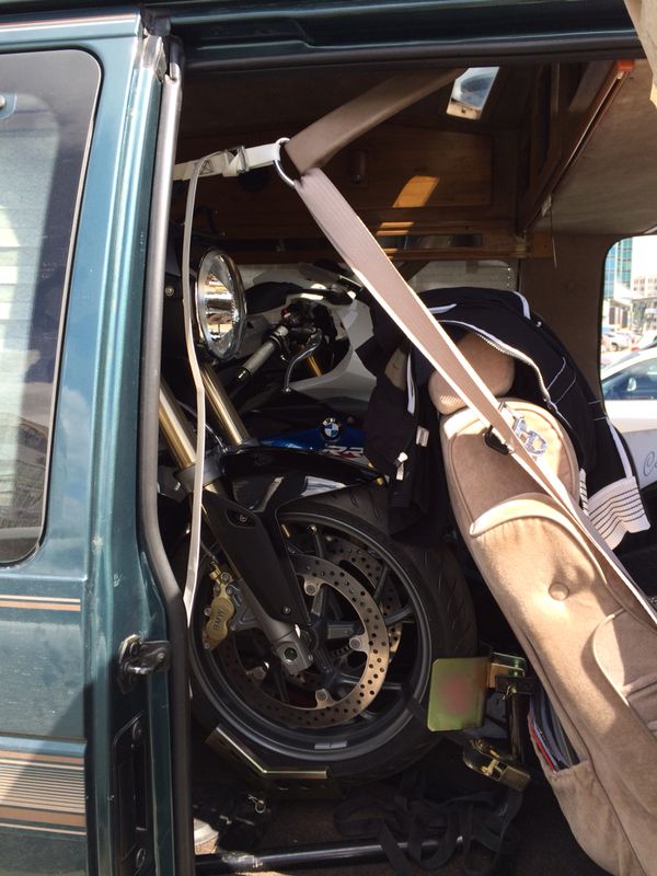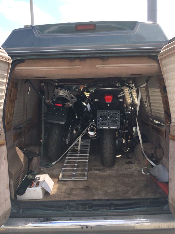 А дальше шла рутинная подготовка к экзаменам в ГИБДД, получение водительского удостоверения и доставка мотоцикла. И как раз 19 июня (когда у меня последний экзамен в ГИБДД) мой товарищ берет микроавтобус Ford econoline 1995 специально подготовленный к перевозки мотоциклов и едет в Москву за своим новым мотоциклом. 4 часа погрузки, 12 часов дороги и море позитива.