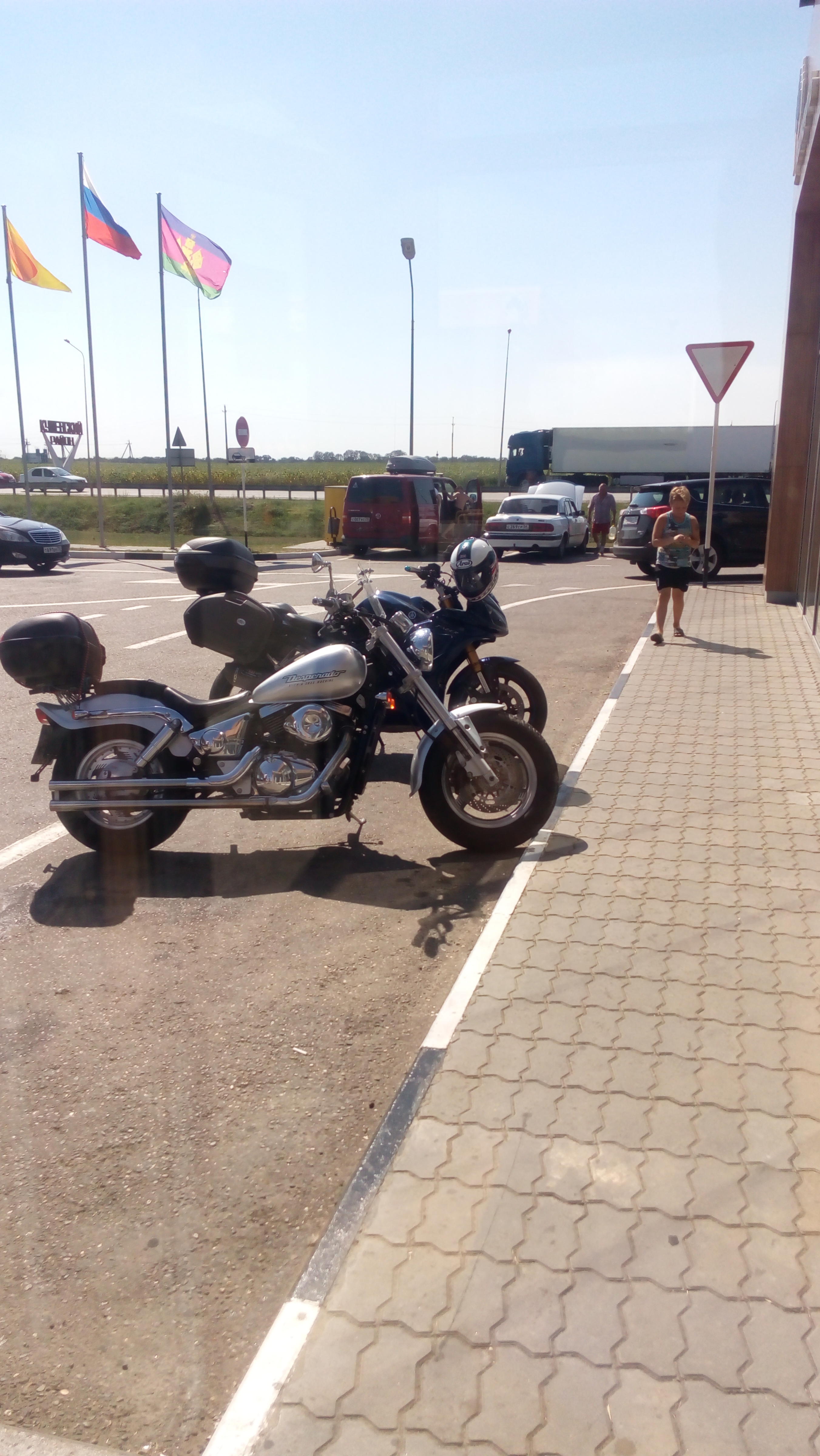 Так как 08.08 отмечался день строителя в РФ, то ехалось как-то очень вяло и сухо. Краснодарский край представлял из себя филиал ада в это время года, и то, что сказать жарко, это так, ничего не сказать, просто в воду пукнуть. И вот, за Ростовом, на очередной заправке(Desperado 400 требует заправки каждые 150 км., а Леха достоен уважения, за такие эксперименты, на чесотке 5000км) замечаю, что из заднего колеса полезли волосы, а еще думал в гараже, поменять что ли, но тогда показалось нормальным. Вспоминаю, что в Каменск-Шахтинском есть Байк отель у дороги. Думаю там подскажут что к чему, ибо возвращаться в Ростов не наш метод.