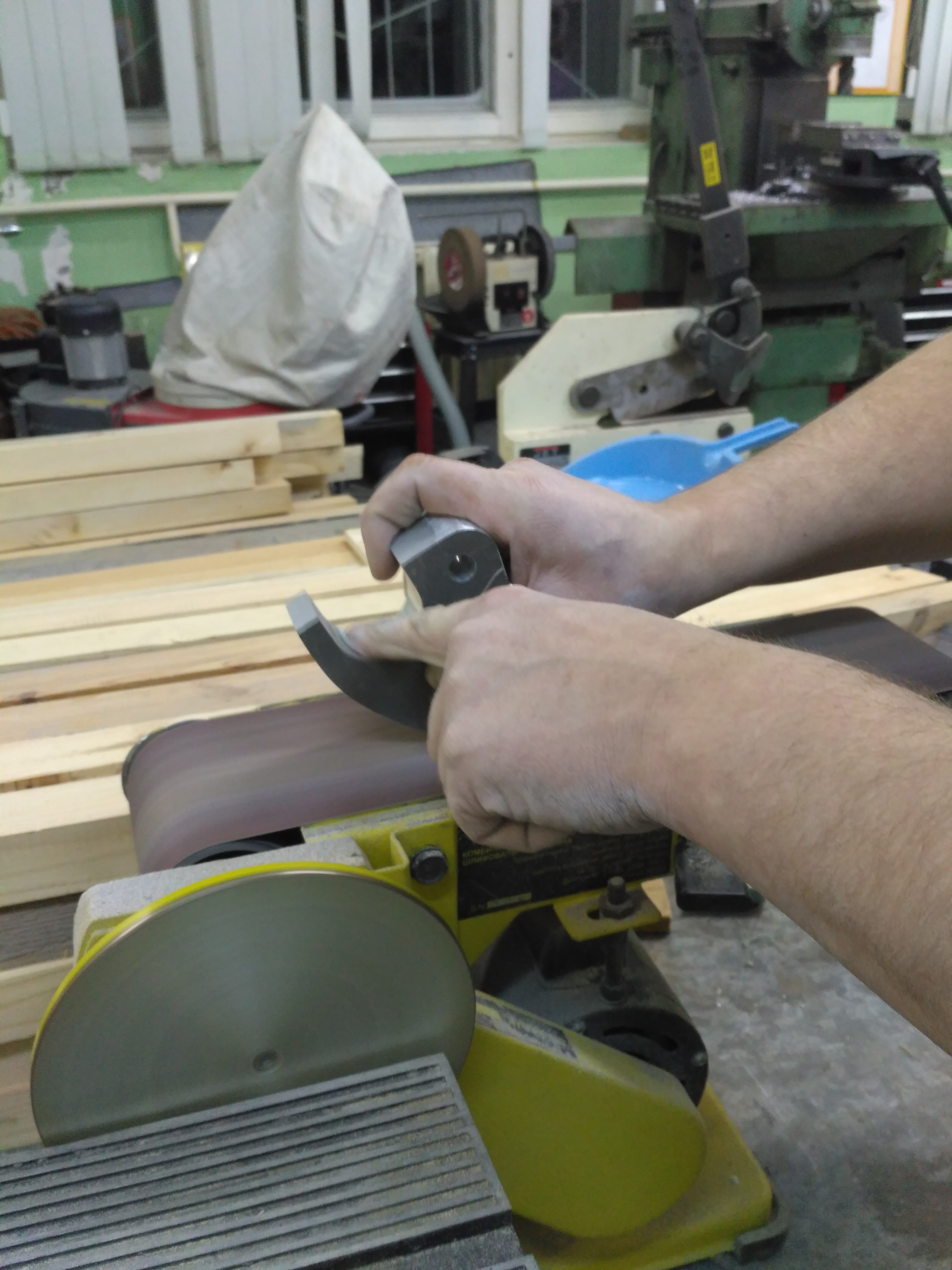 После того как контур был начерно вырезан, настал черед шлифовального станка. Плавно поворачивая деталь, прошлифовал гладкие боковые поверхности.