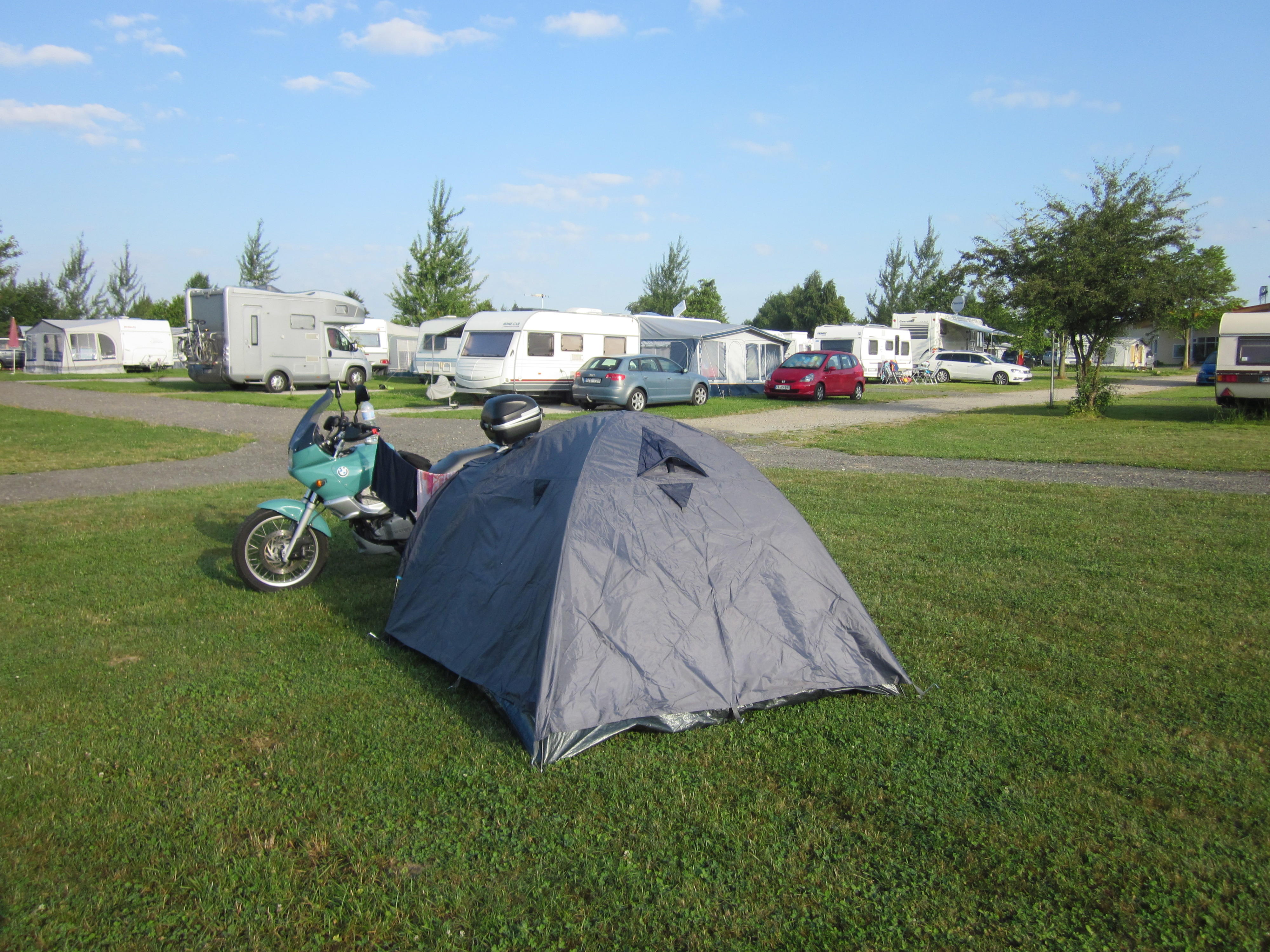 И вот я уже в пути. Мотоцикл едет отлично, дороги хорошие. Тепло, а местами и жарко. Всю европейскую часть я пролетел на одном дыхании с тремя ночёвками, одна в немецком хостеле в г. Хельброн, другая в немецком же кемпинге около г. Дрезден и третья в польском отеле в г. Варшава. Короткая страховка и транзитный номер дают три дня на выезд из Евросоюза, поэтому задерживаться дольше было нельзя.