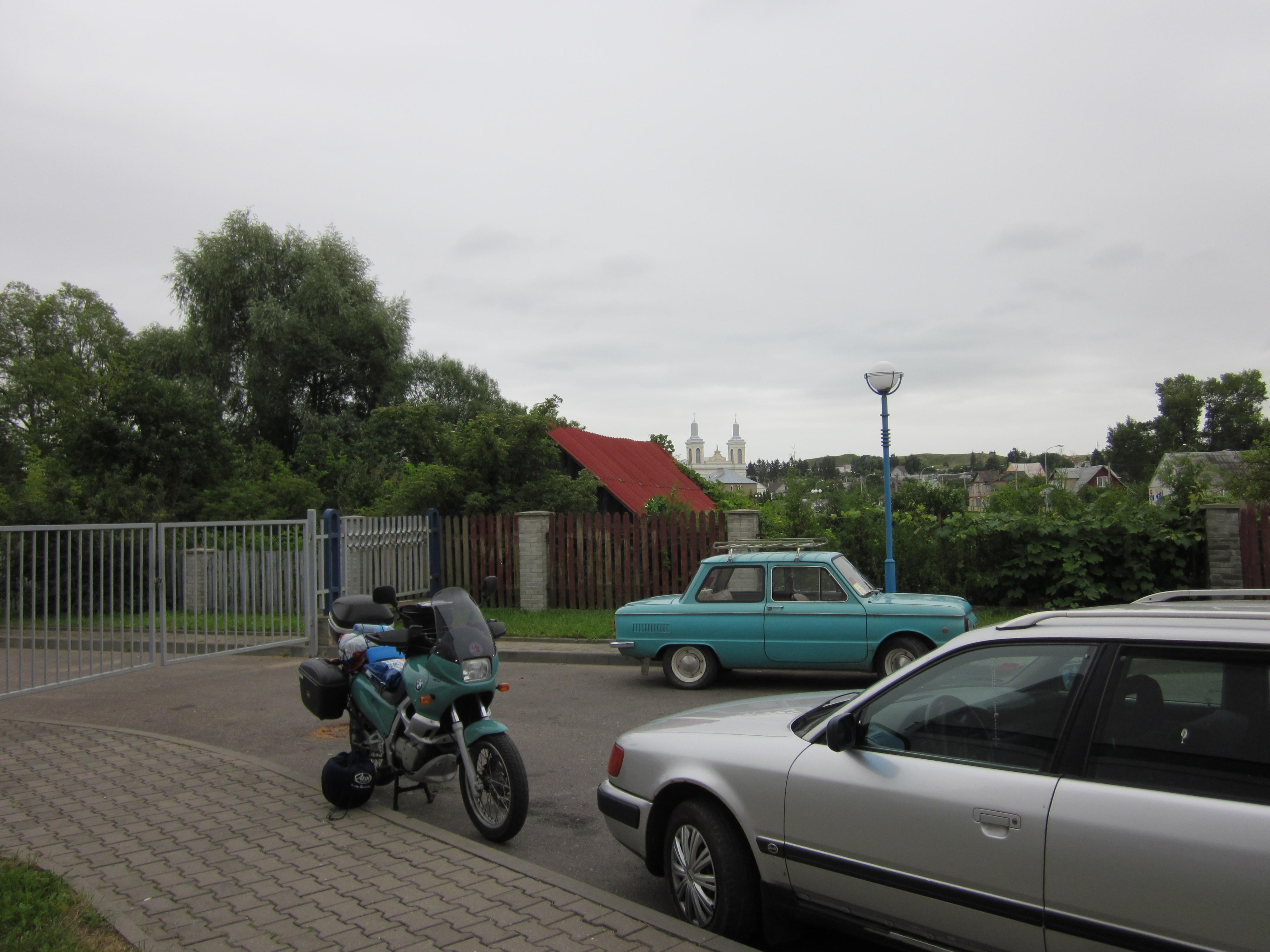 Затем было шестичасовое ожидание оформления на границе с проверкой документов и осмотром мотоцикла. По привычке я поехал через ПП Бобровники-Берестовица (Польша-Беларусь), а там в то время не было отдельного коридора для оформления ввоза ТС и пришлось мне оформляться вместе со всеми водителями-дальнобойщиками-международниками, а это ой как не быстро. Спасибо мужикам, что пропустили меня в очереди на оформление бумаг вперёд. Многие удивлялись перегону мотоцикла, ведь обычно на продажу их везут партиями и в грузовике или бусе. Но вот всё удачно, документы, номера проверены, оформление оплачено, подписи-печати поставлены. Можно отправляться дальше. После долгой развлекухи на границе я решил отдохнуть в гостинице города Волковыск, что совсем недалеко. Беларусь меня встретила дождём и температурой +12, это после +30 и солнца в Германии.