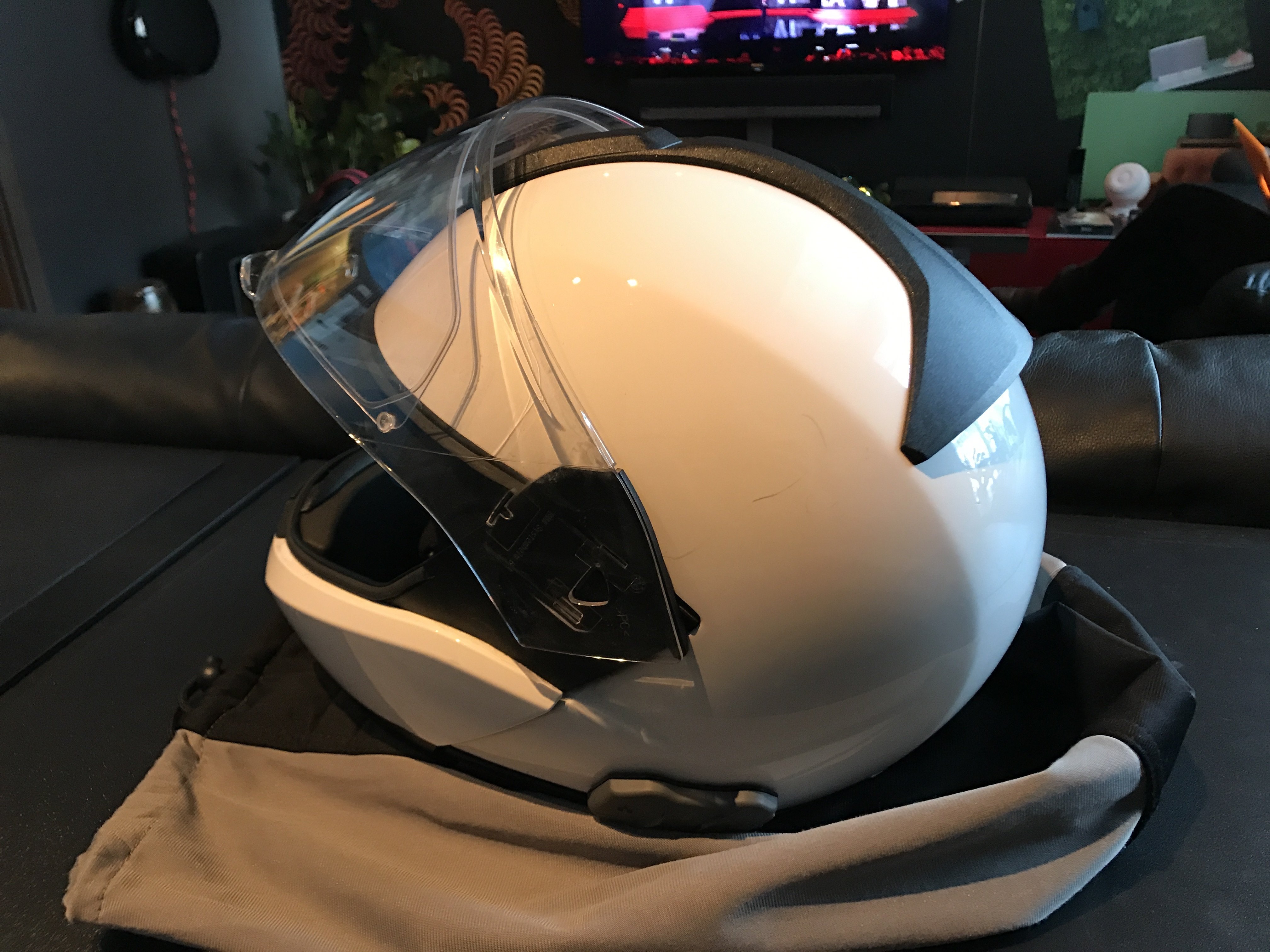 У меня 6 эво. Кстати я вот до сих пор не определился на кольцо удобное управление если гарнитура снаружи висит , или встроена в "воротник"мне кажется что когда идёт дождь, то управление снаружи - более комфортное , так как перчаткой мокрой не будешь тыркать в шею, где обязательно дождевик мешает.