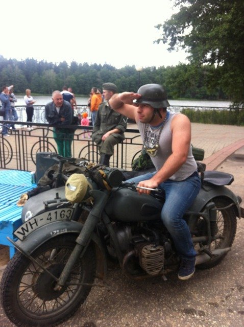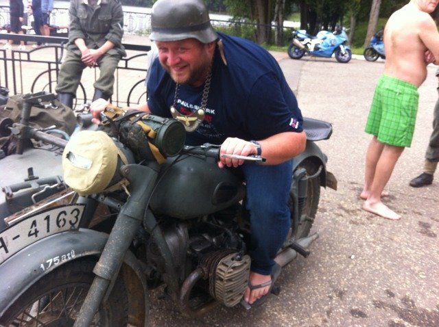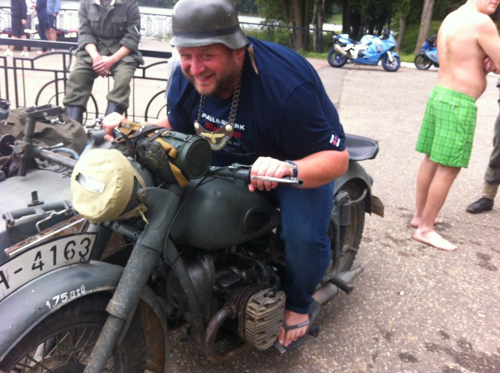 Во время одной из остановок к нам подъехал неизвестный байкер на странном мотоцикле и стал домогаться до Коли.