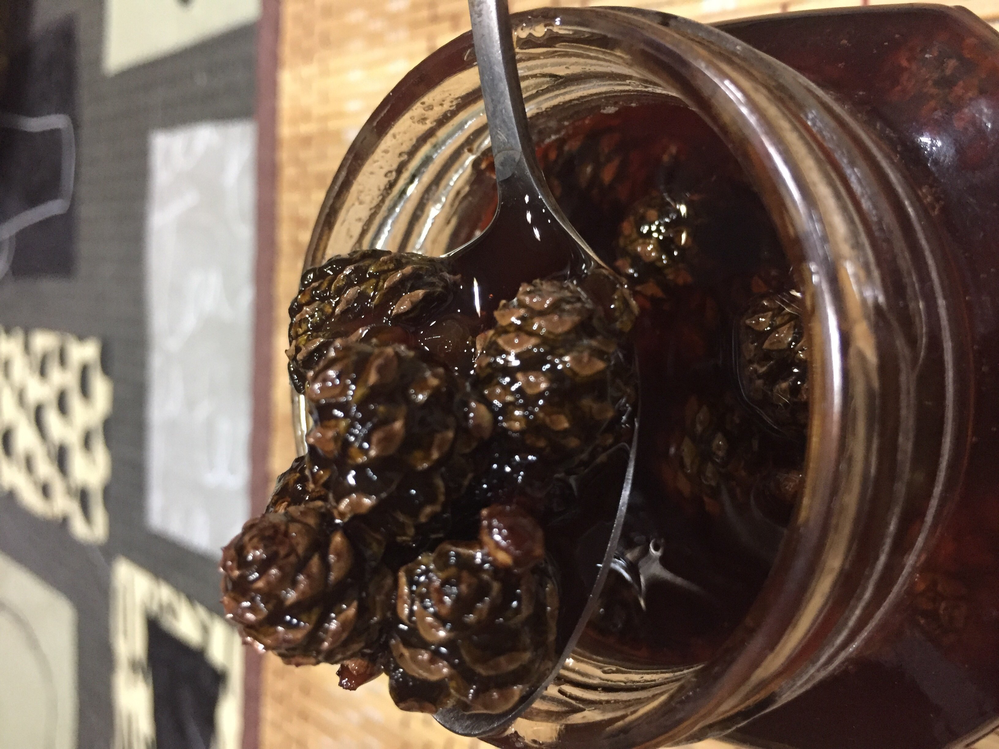 Для тех, кто не в теме, Леха подарил мне таки баночку варенья из этих самых шишек!