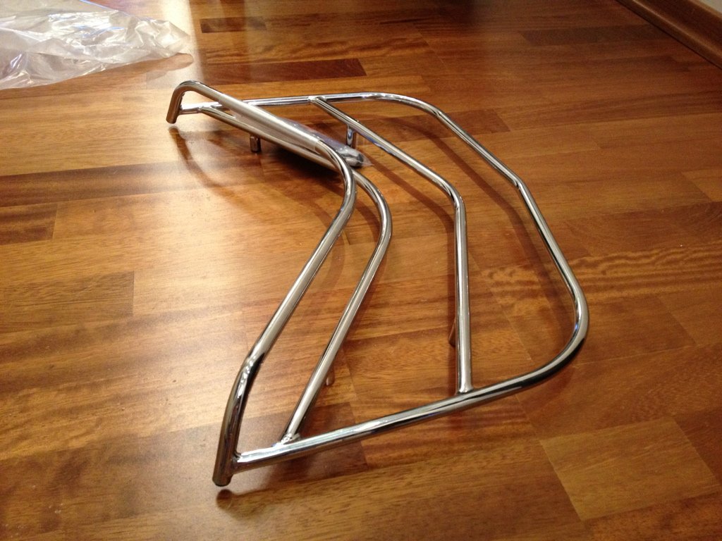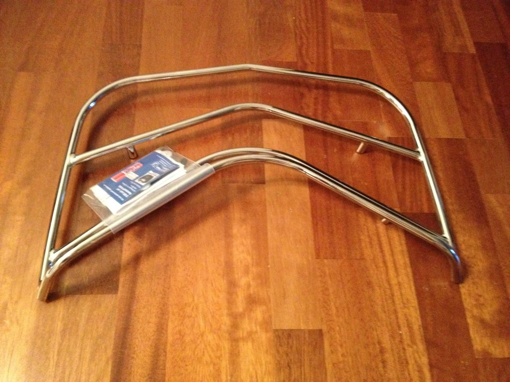 Решетка мне очень понравилась. На ней удобно на ходу сушить под пауком дождевик, на нее удобно застегивать шлем на стоянках, чтоб не падал. Кроме того , за нее удобнее переносить снятый кофр.