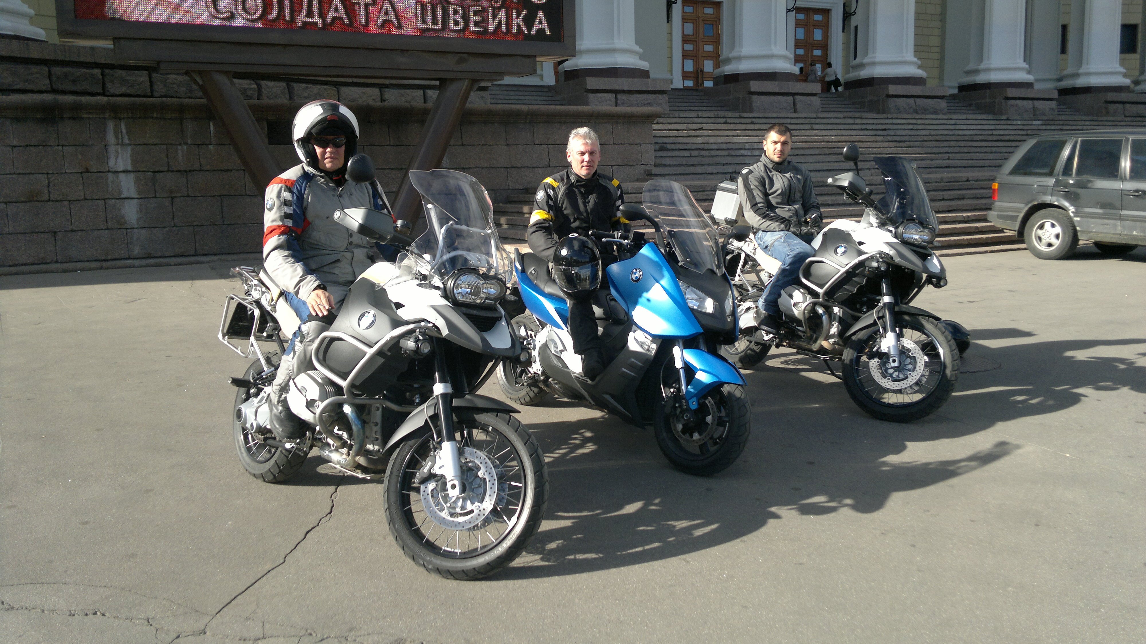 На тест драйв в Авилон мы с друзьями приехали с разными задачами , светило солнышко и светились лица поклонников мотоциклов BMW разбирающие вожделенные модели, как при коммунизме. Grey, приехал узнать на сколько его красный гламурный KS отстал по проходимости от Андвенчера 1200, или погонятся со Мной на равных мотоциклах. Я, записался на тест ощутить разницу между моим Гусем и Андвенчером, а, за одно, сделать Greya в гонках на GSах. Зачем приехал Sergio, Я, не знаю, видно покрасоваться своим большим Гусем. Закурив перед стартом и окинув взглядом мотоциклы, Я, понял всю абсурдность этого тест драйва, Мы могли просто поменяться своими мотоциклами, друг с другом.