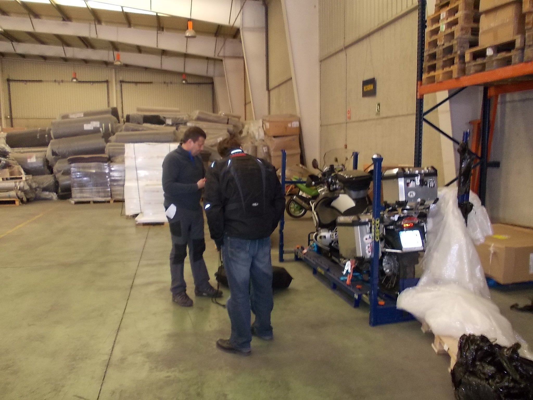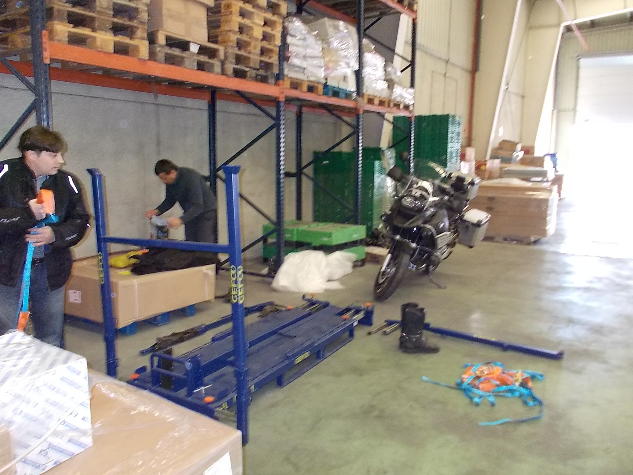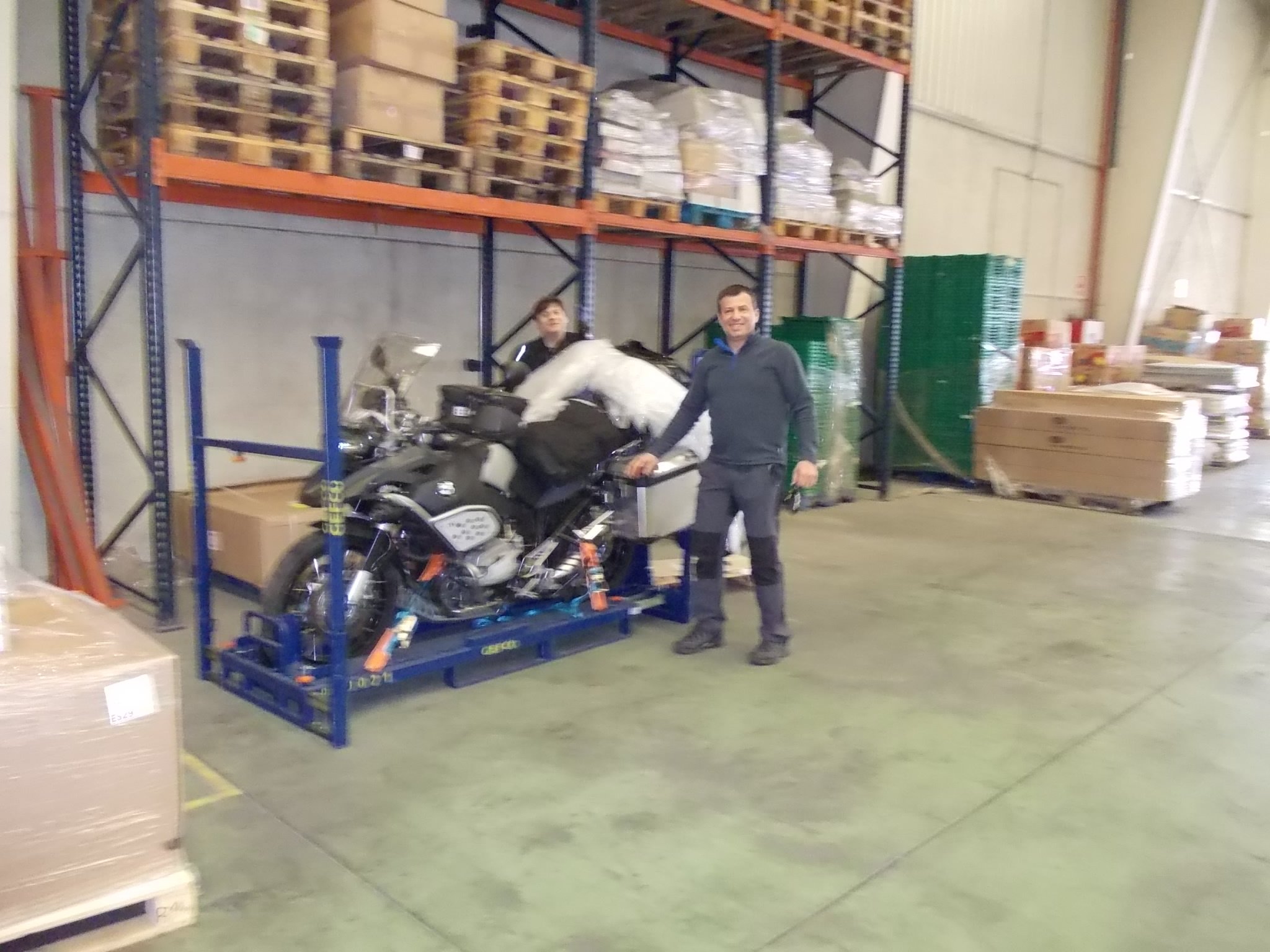 Работает это так. За неделю до планируемой даты получения мотоцикла в нужном пункте, он доставляется в Варшаву на базу GEFCO, где под твоим чутким руководством мотоцикл и все вещи грузится на спец поддон, и защищается дополнительно пленкой с воздушными пузырьками и поверх скоч пленкой. Поставляют они только в города где находятся их транспортно-логистические базы (практически все города Европы) куда также летают самолеты. После трипа сдаешь мотоцикл в тот же пункт в котором его получал . К сожалению не на всех базах персонал знаком с этой системой и мотоцикл иногда приходится грузить и защищать самому. Например в Милане персонал был профи, а в Малаге вообще «0» не знали на какой кобыле к этому подъехать:pardon:.