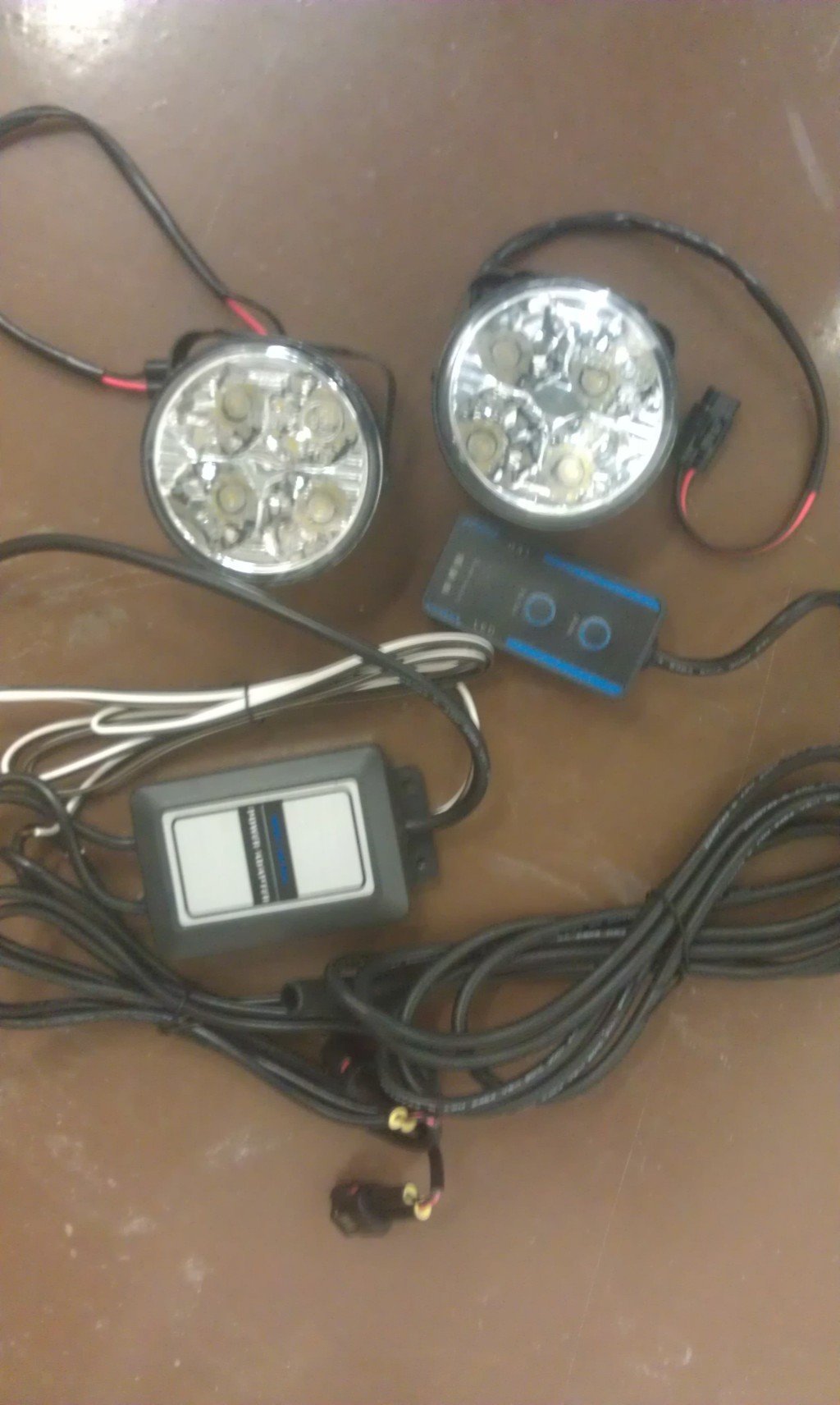 в частности устанавливаем LED ходовые огни (помимо яркого и белого света в них есть функции попеременного мигания и несколько видов стробоскопического эффекта)