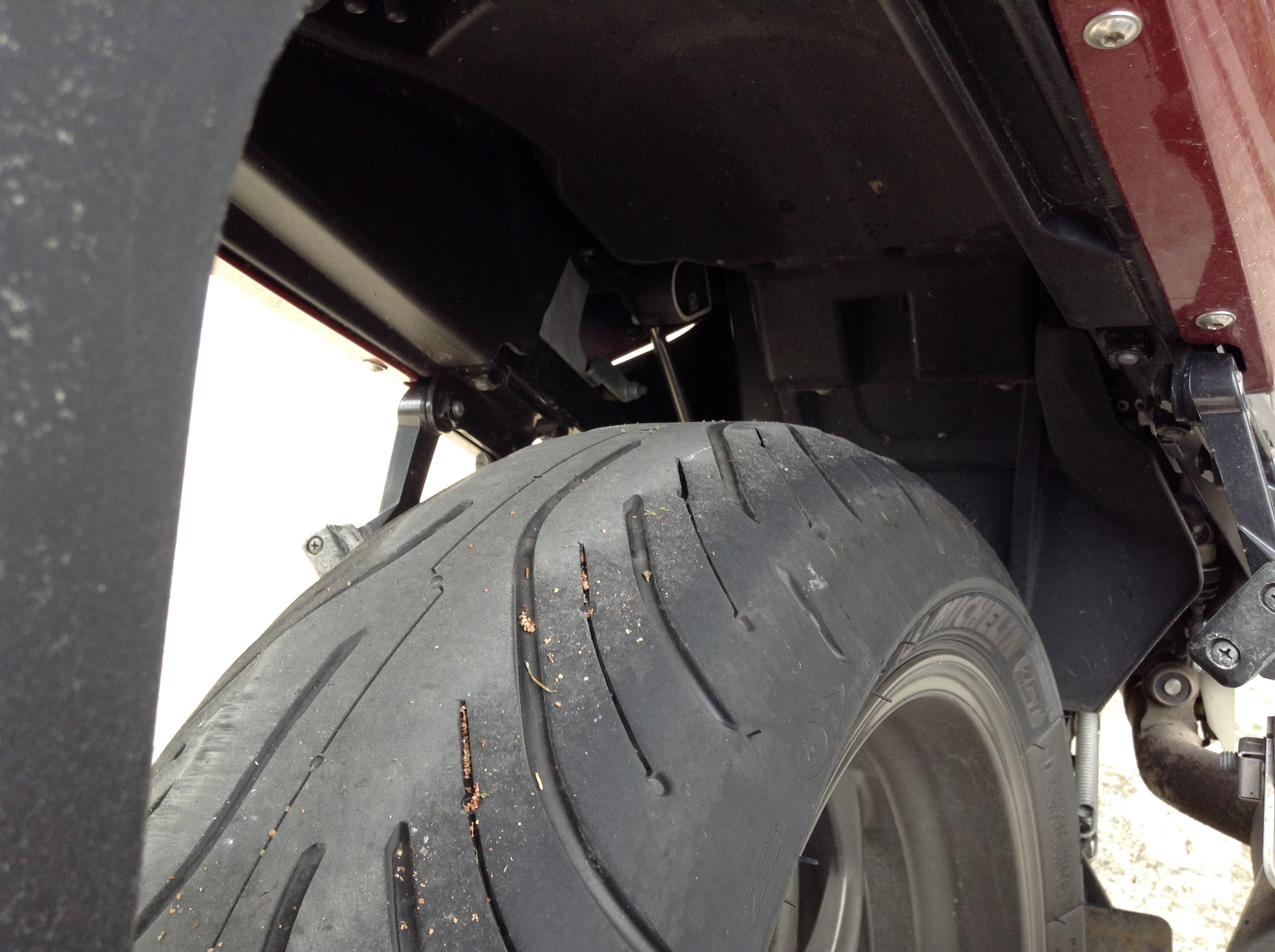Прожил Мец около 10 тыс с лишним, за 200км до дома заметил корд. За пару тысяч км до этого измерял монеткой, еще 5 мм резины было. Но потом топнул 140-230 с гружеными кофрами и видимо сожрал мгновенно. Ничего плохого про Мец сказать не могу, резина отличная, проверил на серпантинах под Сочи, закладывал до подножек. На очереди Мишка 4 ГТ!