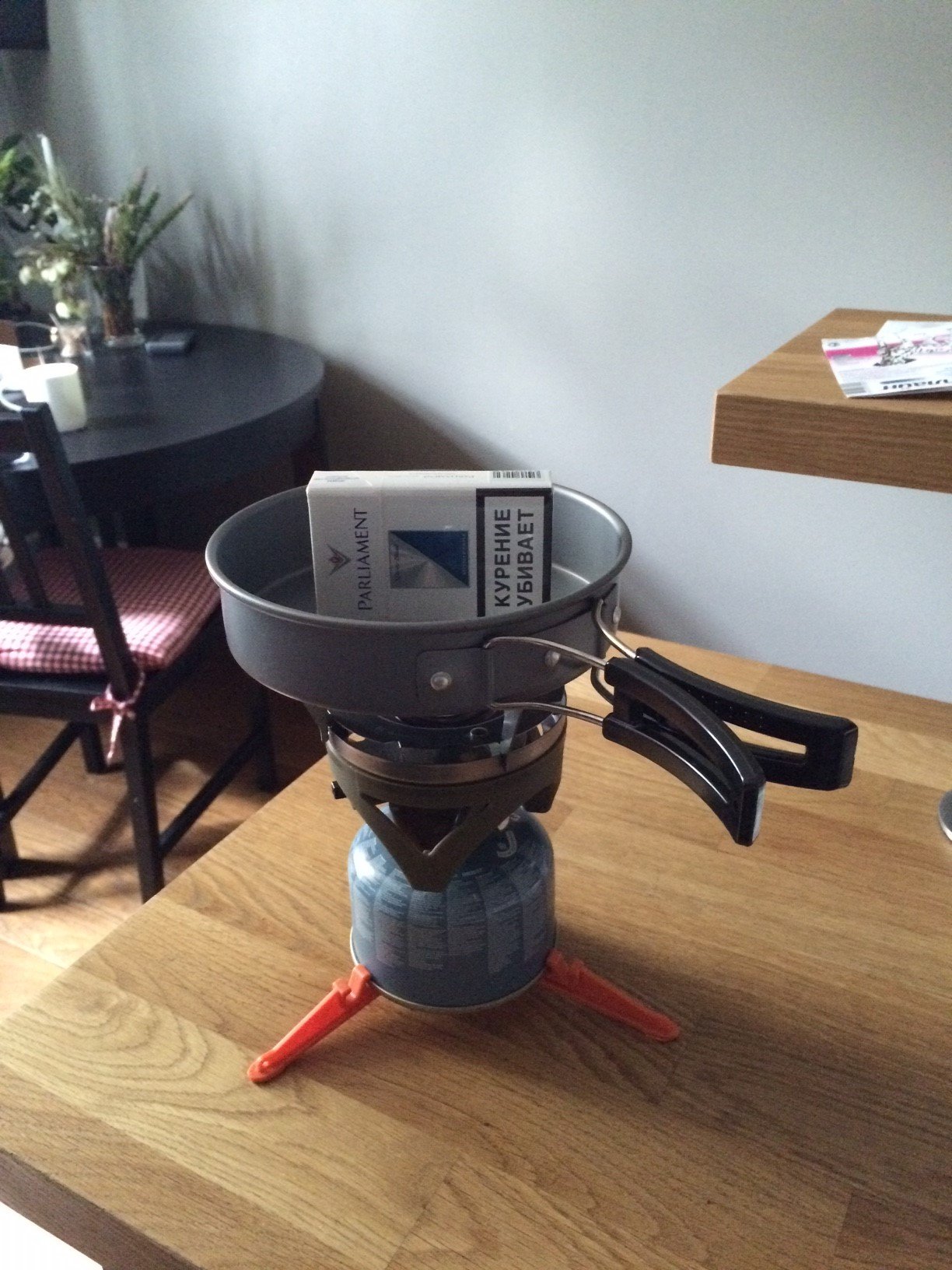 В большую кастрюдлю должен газовый баллон входить!