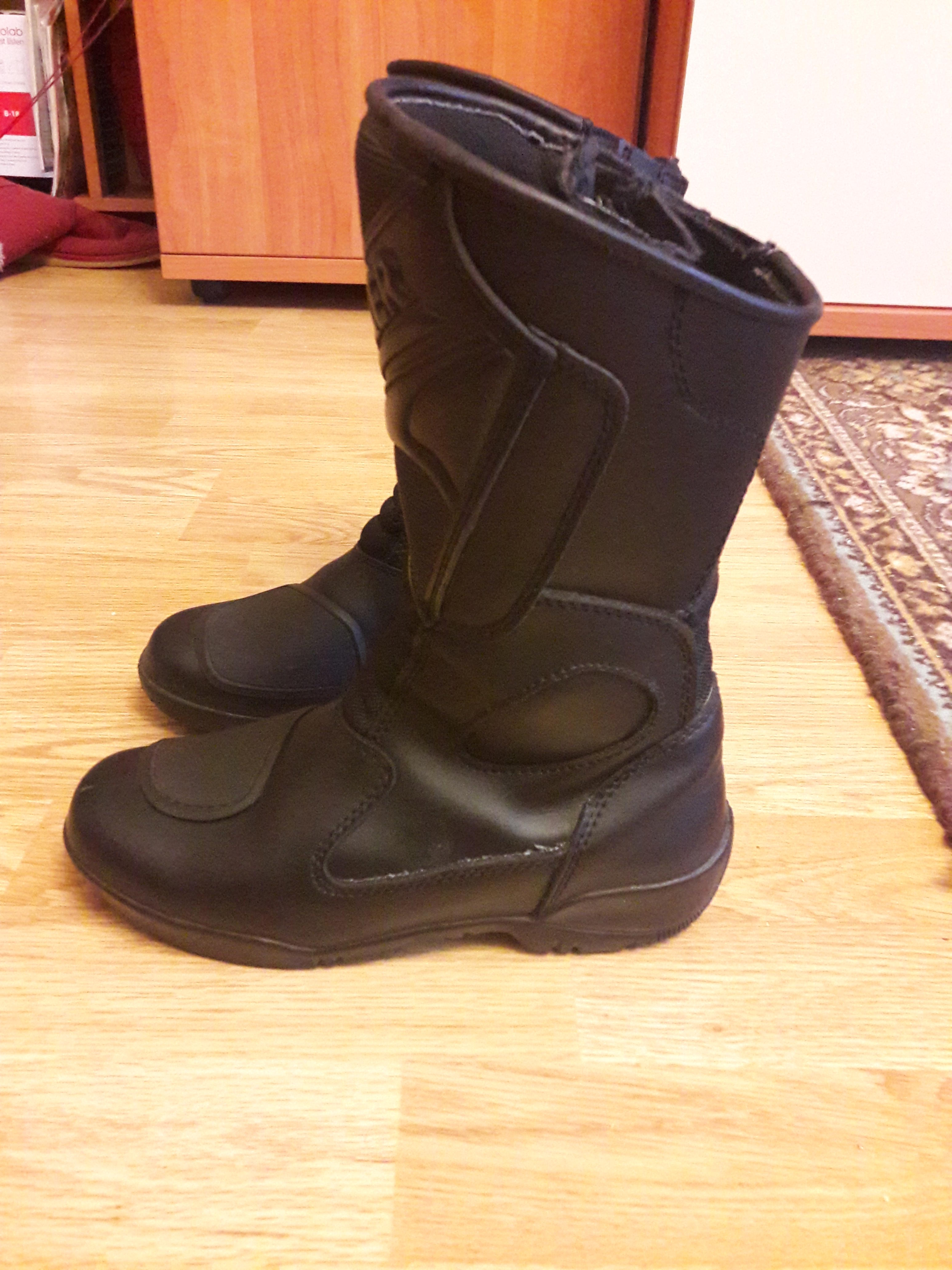 Мотоботы девочковые 36-37 совсем новые, ездили пару раз, но немного подрал кот ткань на сгибе.