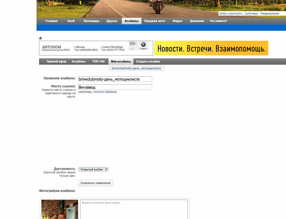 Лохматый, когда альбом будешь заливать, обязательно при заходе в свой профиль нажми галочку запомнить.