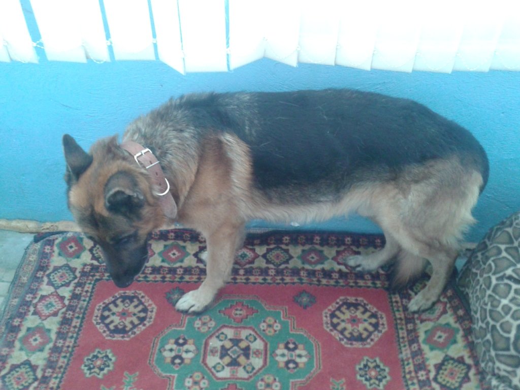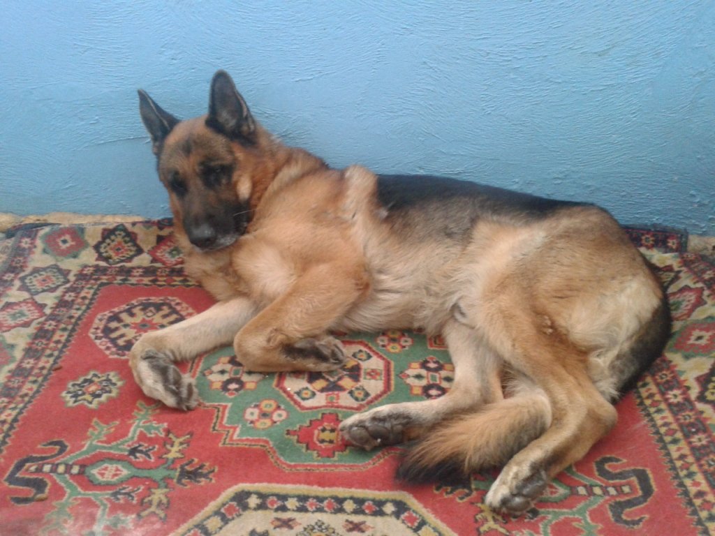 Крупный, красивый, ухоженный. Шерсть блестящая, гладкая, видно что парня все таки любили.